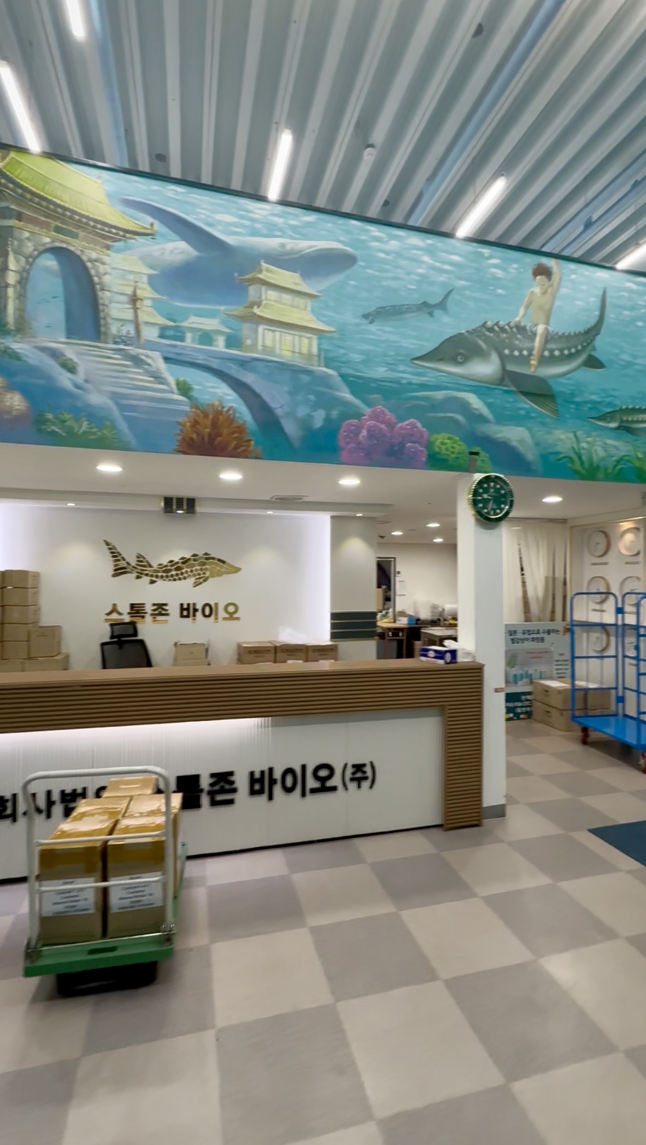 🐟 本社内にはチョウザメの観賞用水槽も…!