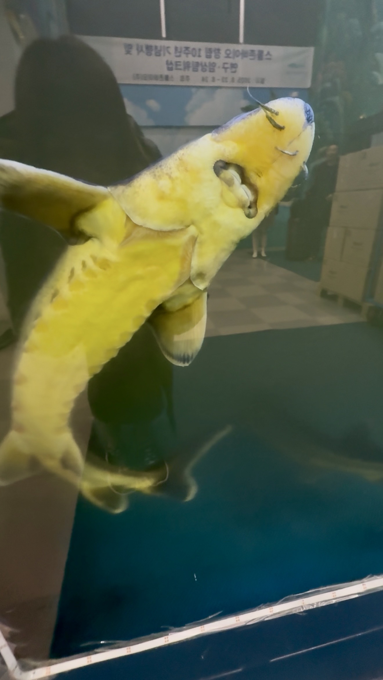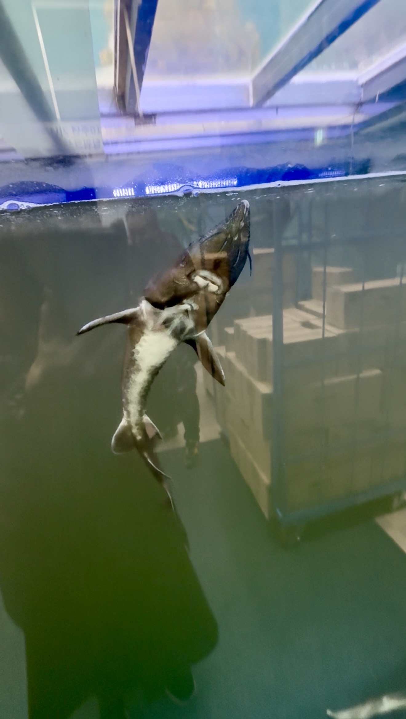 訪問時には、チョウザメがゆったり泳ぐ水槽がありました。