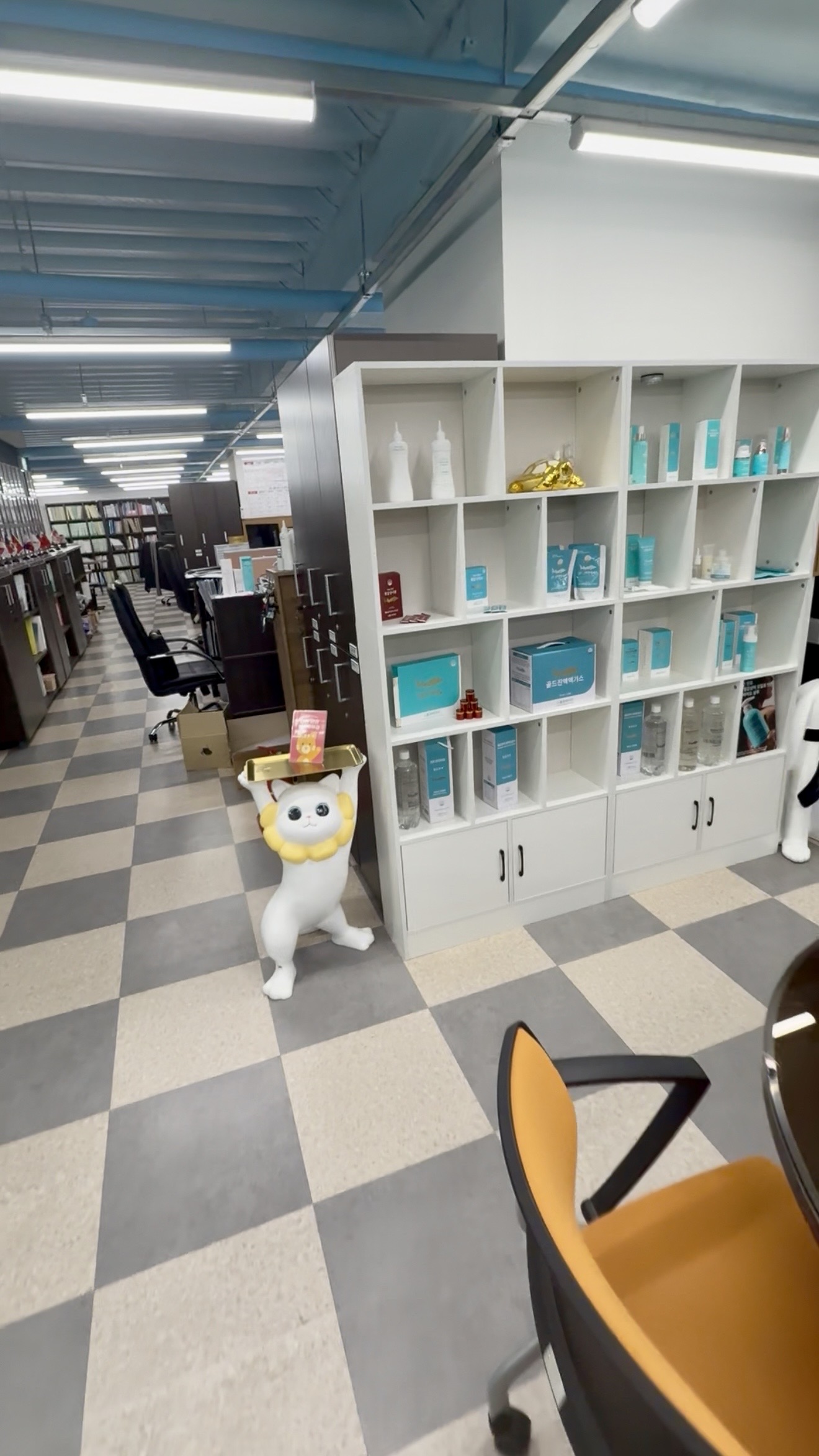 本社の一角には、The Zoeun Skinのラインナップがずらりと並んだ展示棚があります。