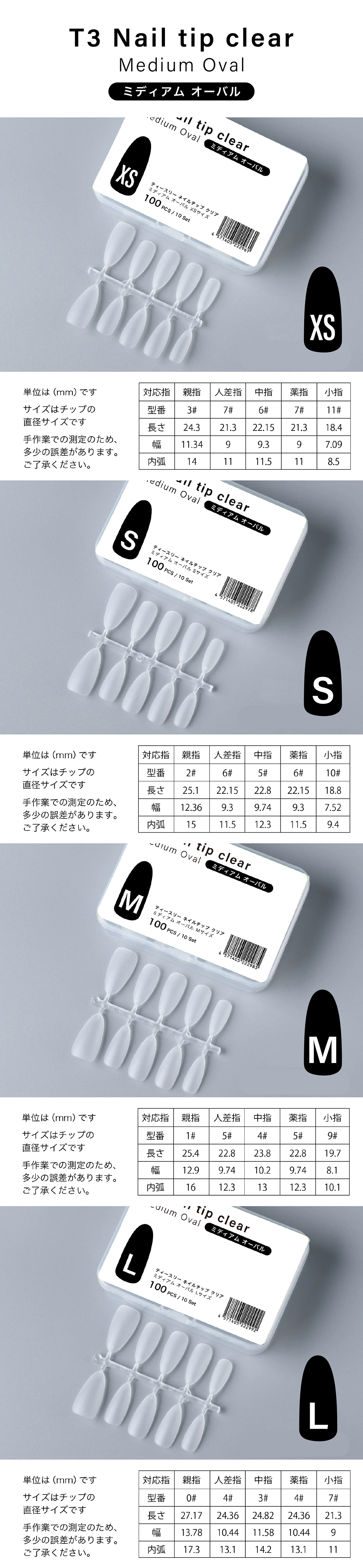 【商品概要】 サロンワークに最適なオーバル型のクリアチップです。 自然な透明感で仕上がりの確認がしやすく、デザインベースとしても扱いやすい仕様。